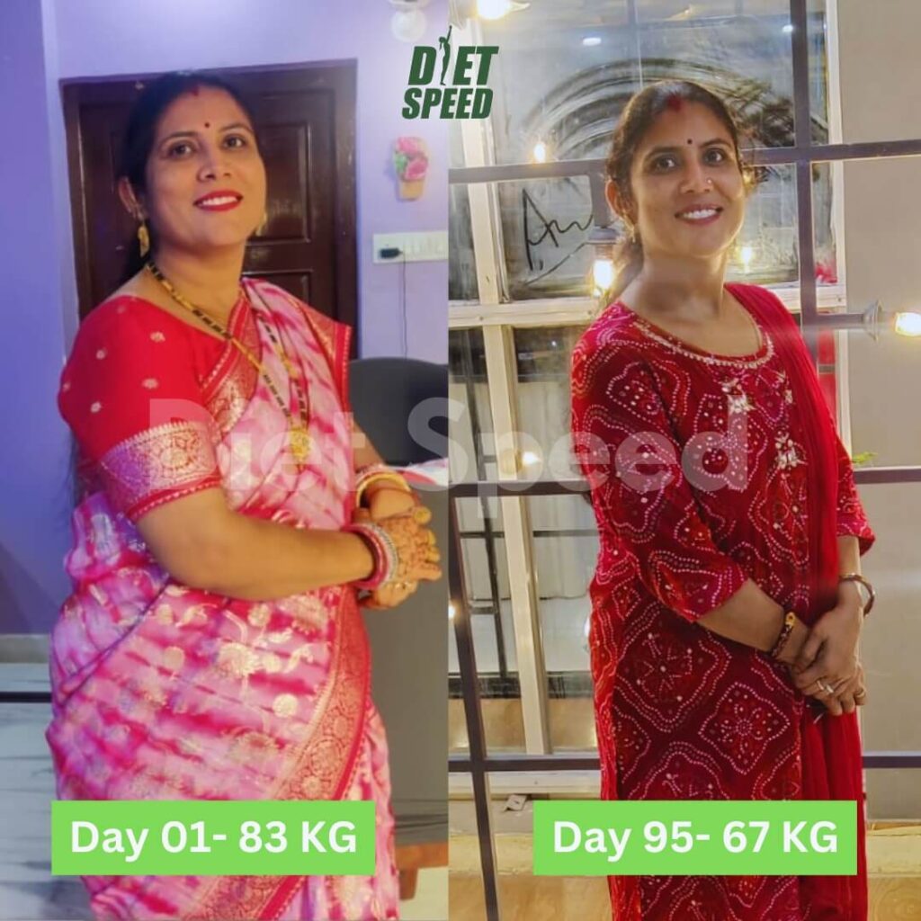 With Diet Speed’s personalized plan and constant guidance, Bindu followed a balanced routine with mindful eating and regular walks. Over just 4 months, she shed 17 kg—dropping from 82 kg to 65 kg—while improving her stamina, digestion, and overall energy.